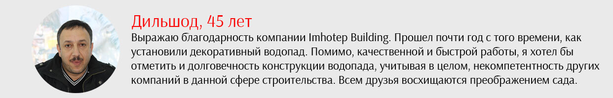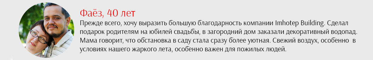 Декоративный и искусственный водопад является одним из основных видов деятельности компании "Imhotep Building".